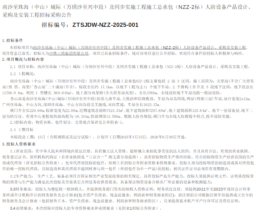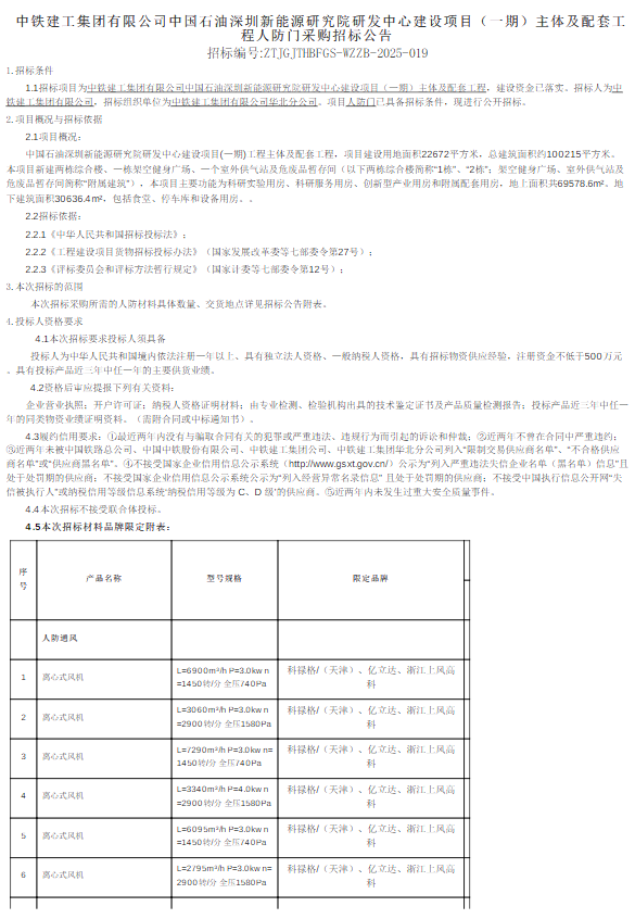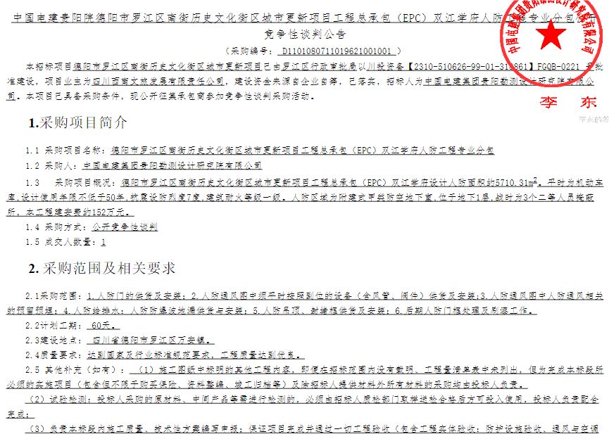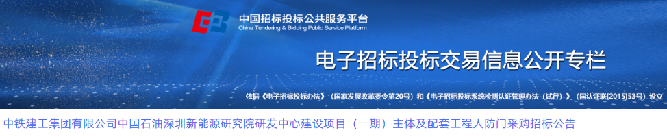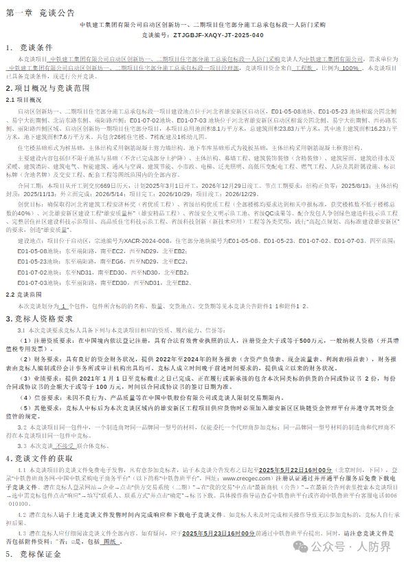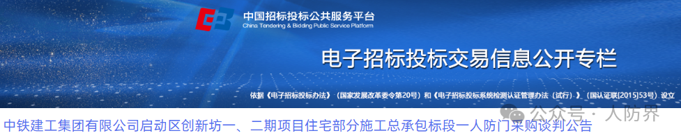 中铁建工集团有限公司启动区创新坊一、二期项目住宅部分施工总承包标段一人防门采购谈判公告