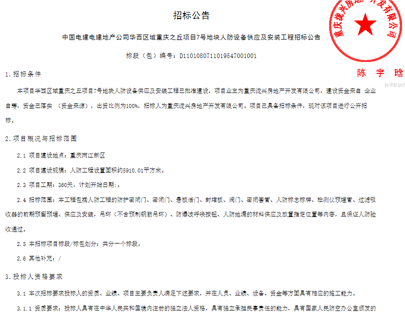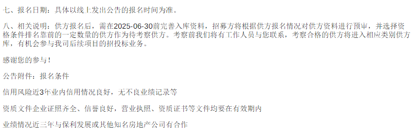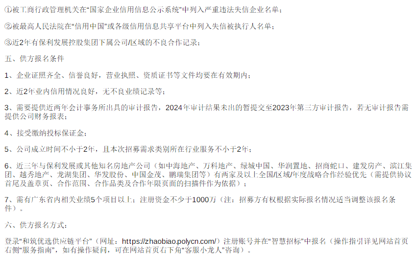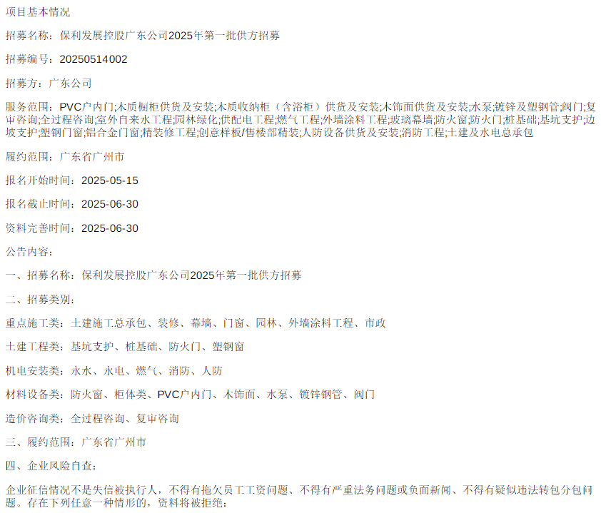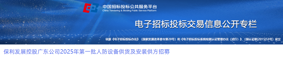 保利发展控股广东公司2025年第一批人防设备供货及安装供方招募福建省