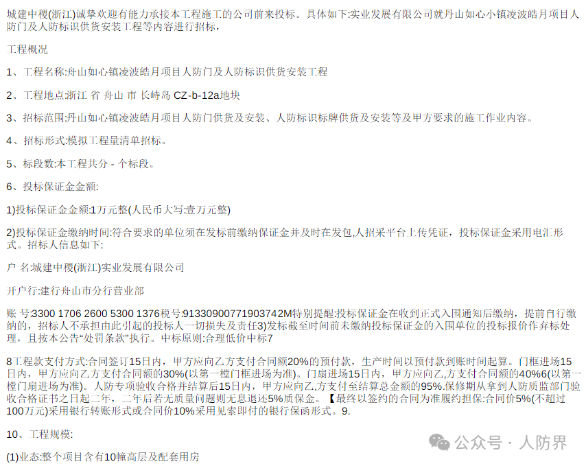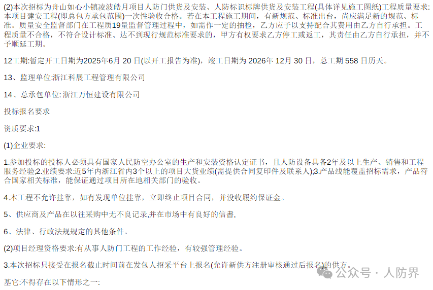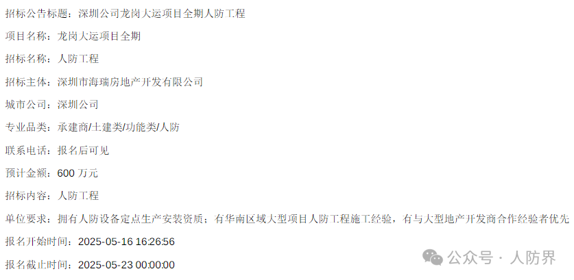 最新人防招标公告信息
